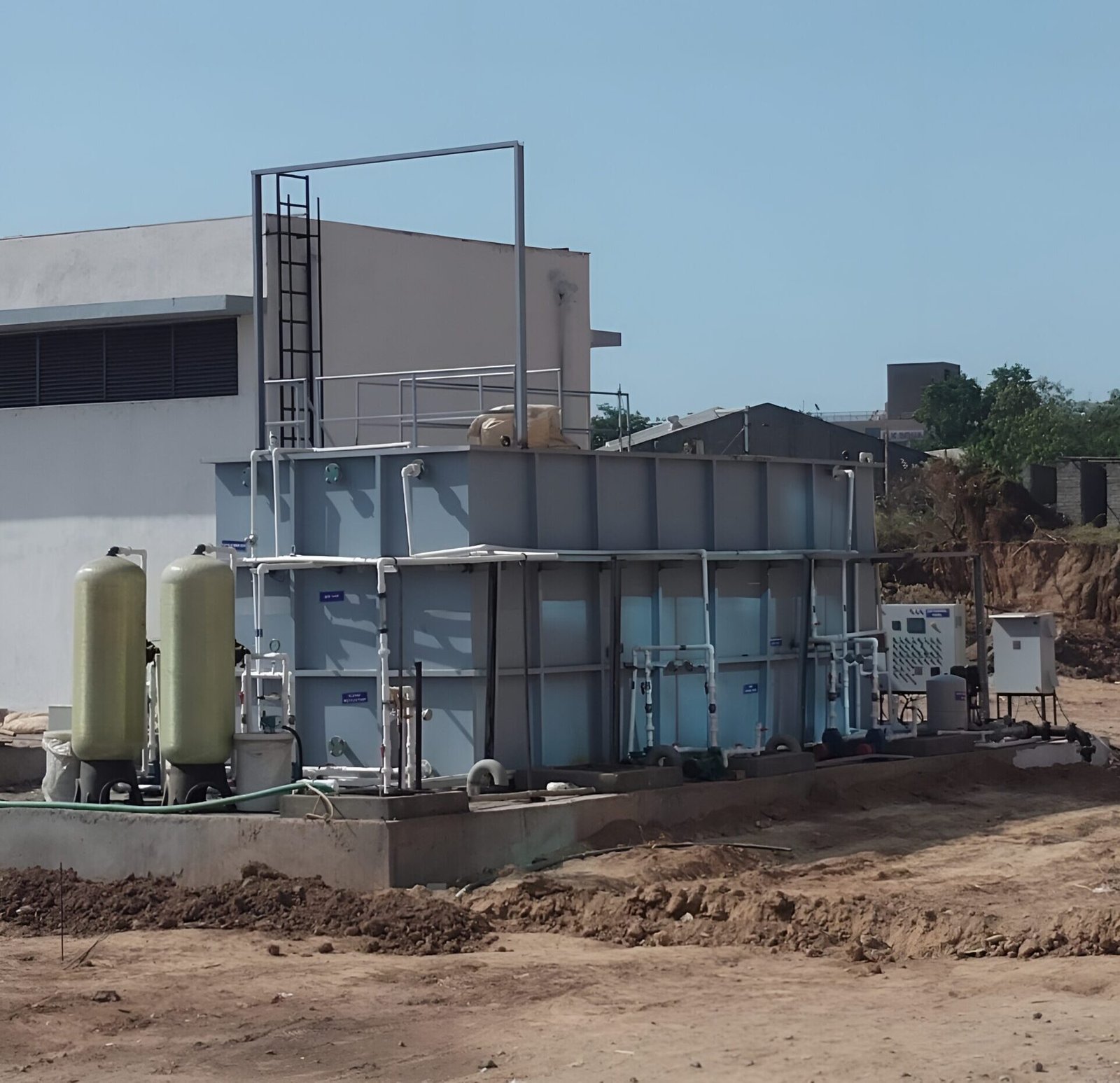 Completed 110 KLD Zero Liquid Discharge (ZLD) plant designed for complete wastewater recovery, integrating MEE, ATFD, and RO systems to ensure environmental compliance, resource reuse, and sustainable industrial operations.